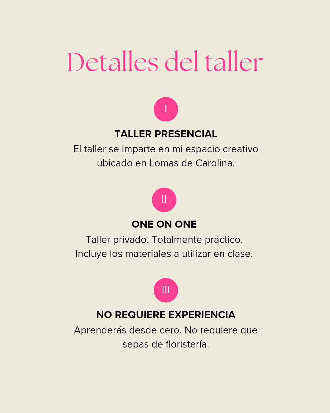 Taller presencial en Lomas de Carolina. No se permiten acompañantes.